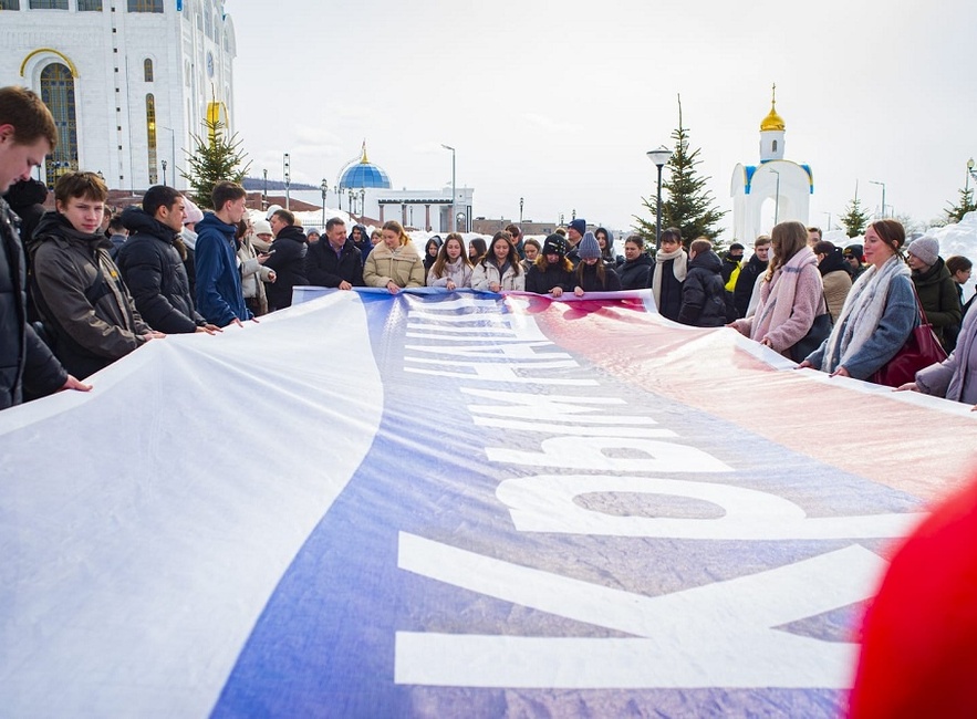 Сахалинская молодежь развернула гигантский триколор
